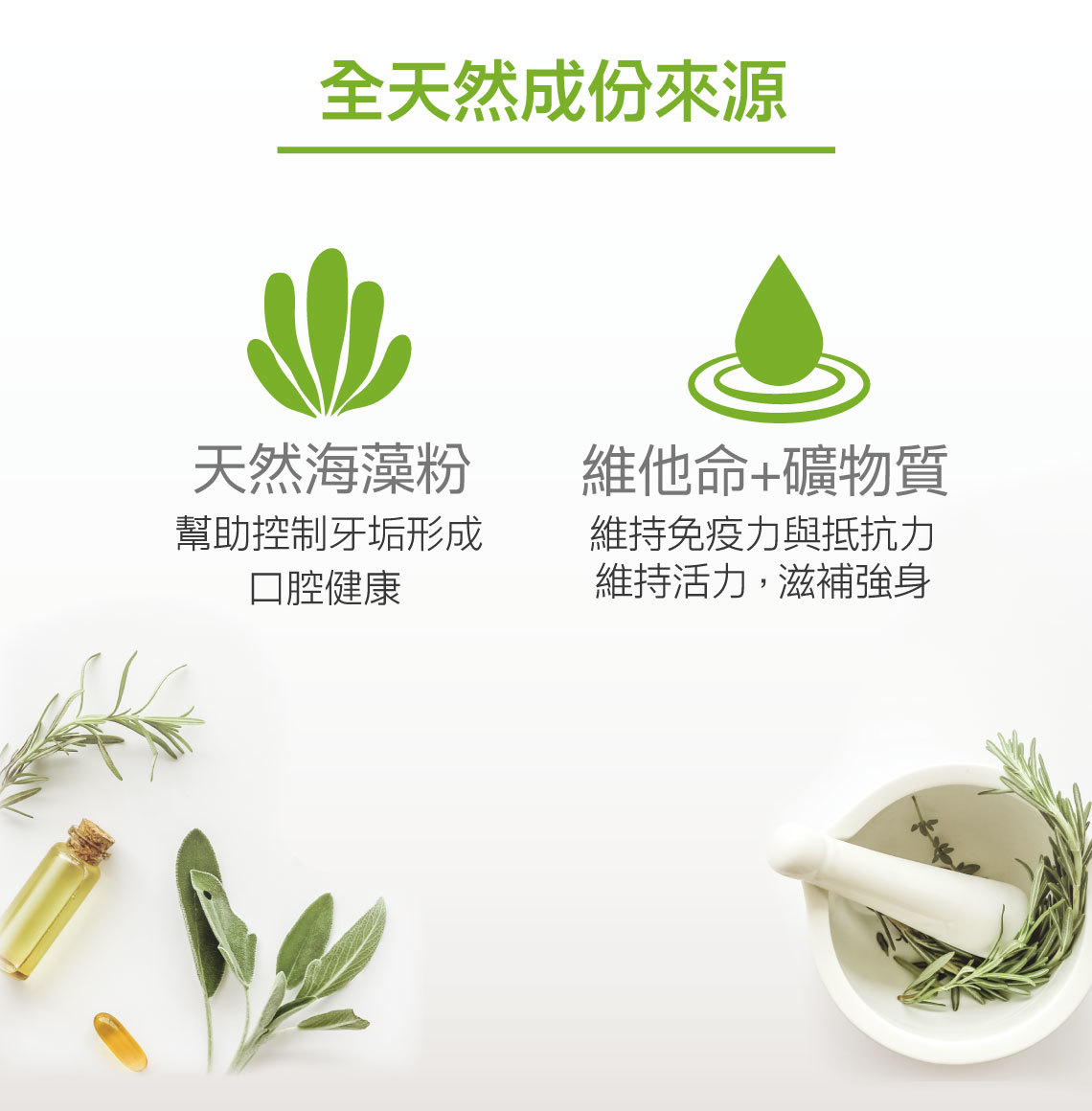 能釋放豐富天然酵素,維護牙齦健康,幫助控制牙垢形成,降低口臭,還可以補充豐富的礦物質及微量元素。