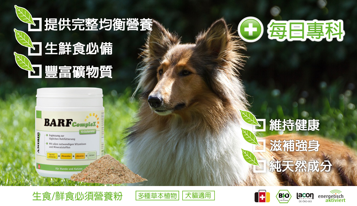 提供以生食/鮮食為主的狗狗極完整營養補充,含豐富含多種維生素、礦物質、鋅、硒...等。