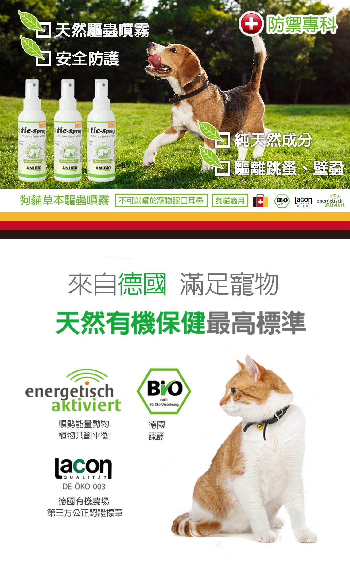 天然配方驅離跳蚤、壁蝨,拒絕化學物質,同時防護寵物。