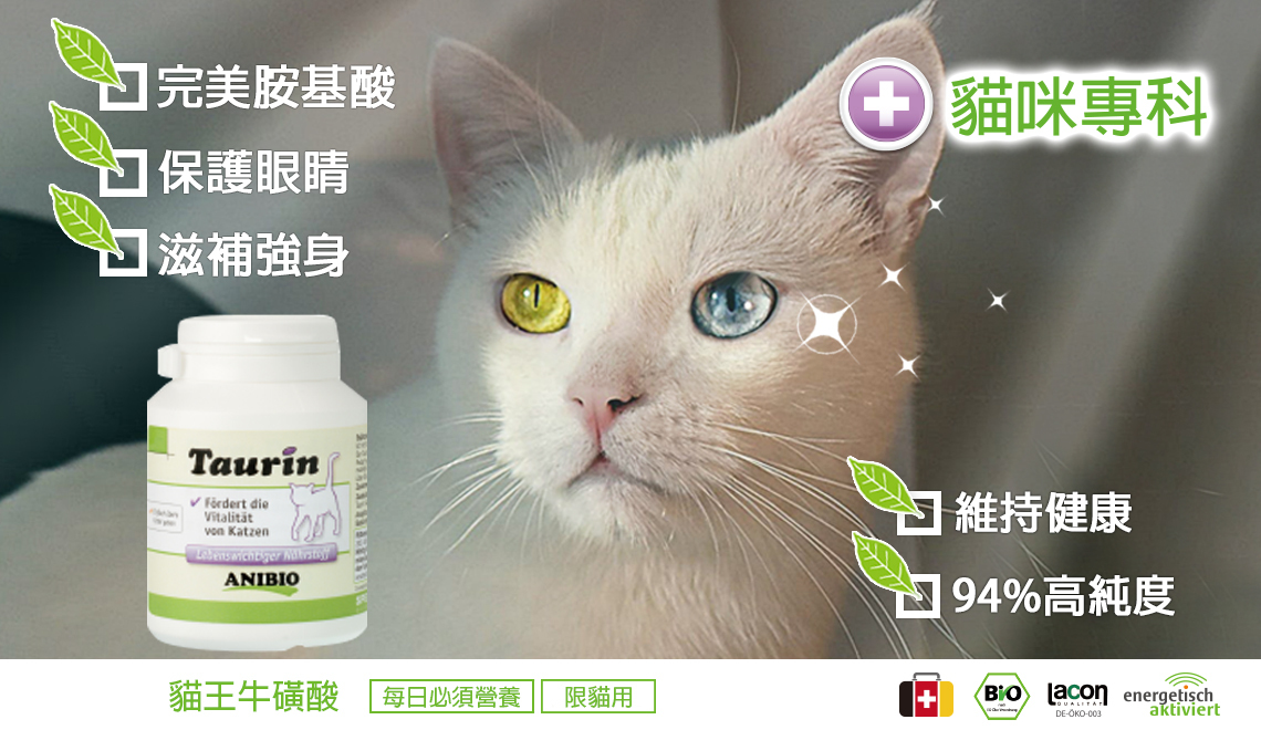 牛磺酸是維護身體健康的必需胺基酸,且貓咪無法自體形成,飼料中的含量也相對低,攝取牛磺酸對保護眼睛、心臟肌肉是相當重要的。