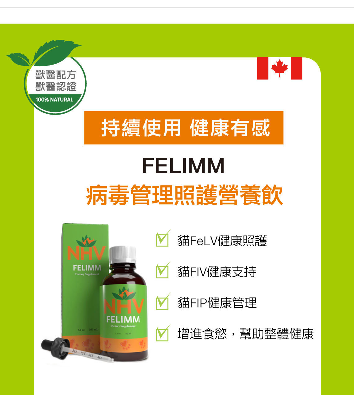 NHV藥草獸醫。FIV/FIP照護營養飲 FELIMM